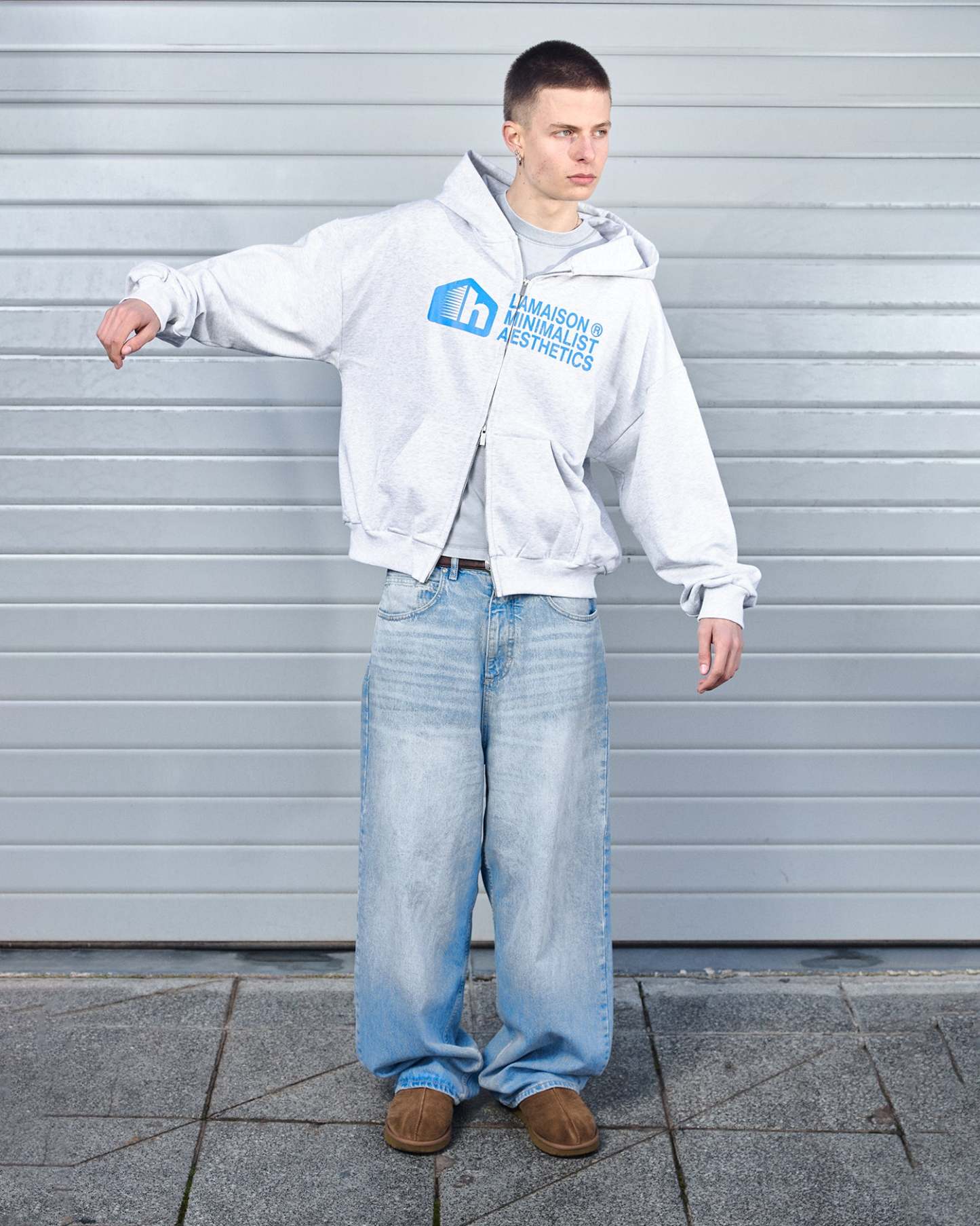 HHOUSE GREY ZIPPED HOODIE