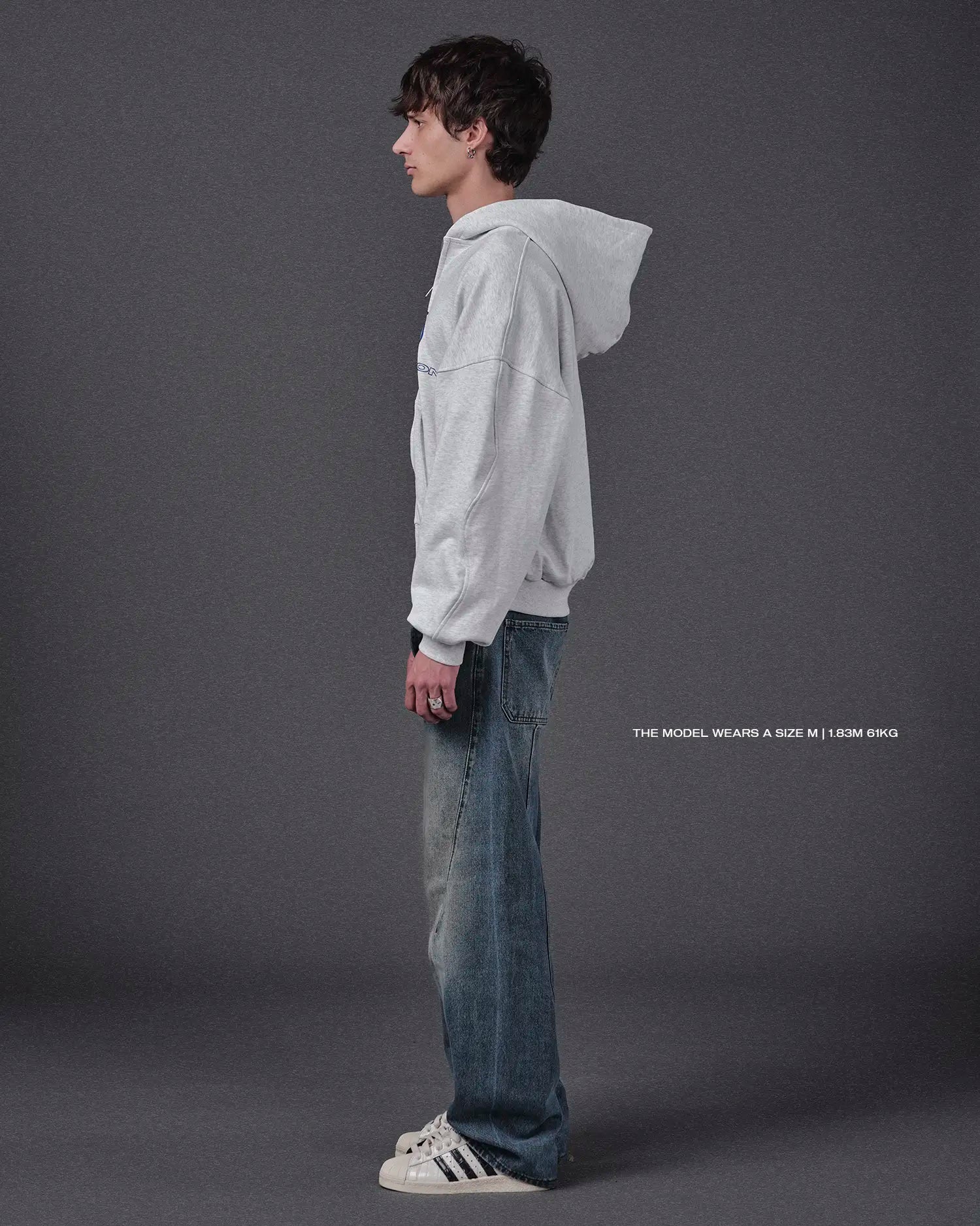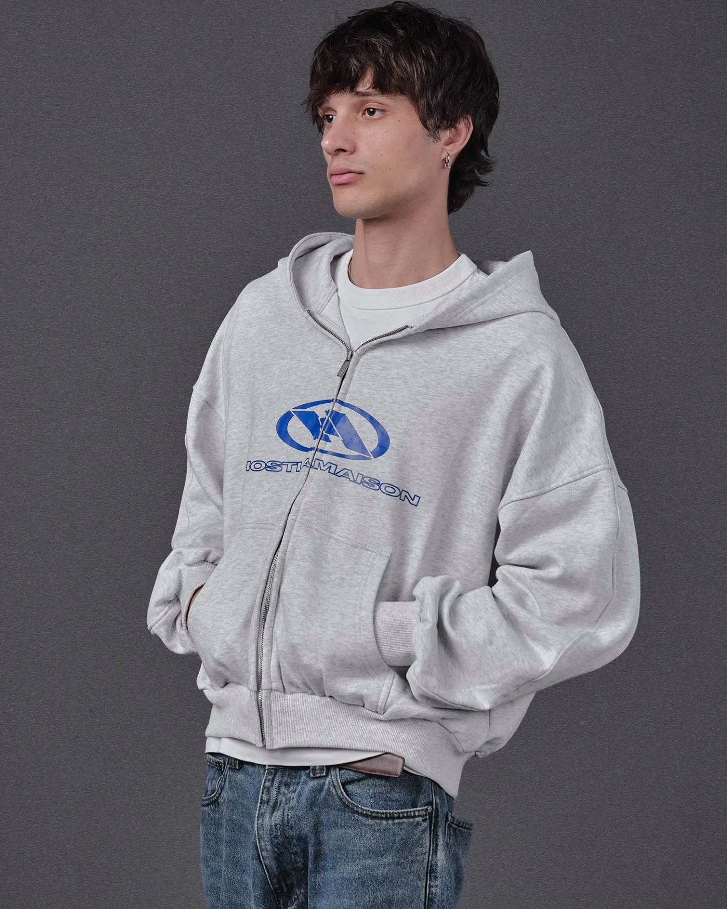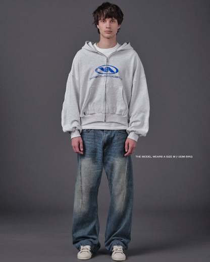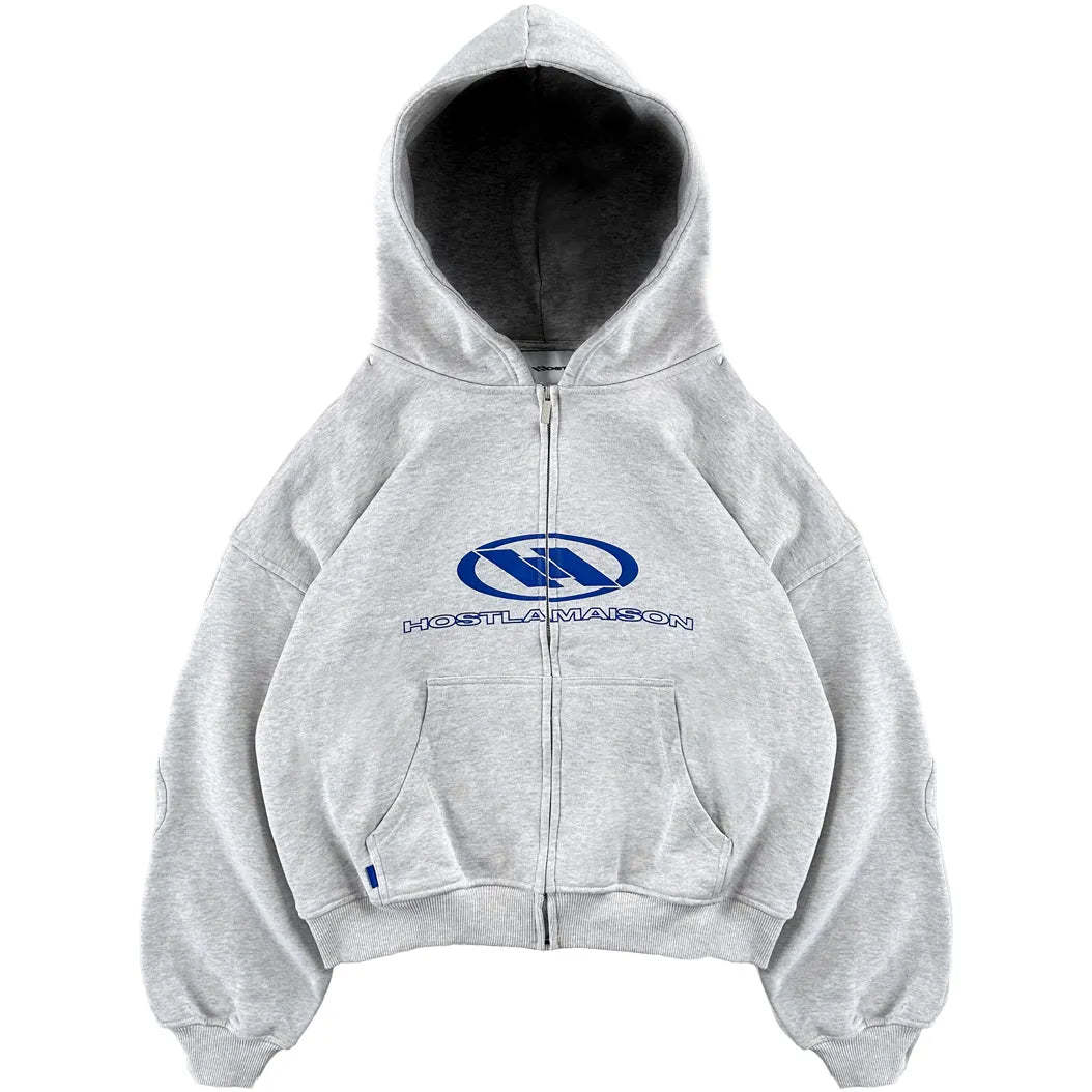 WAVY ARMS GREY ZIPPED HOODIE