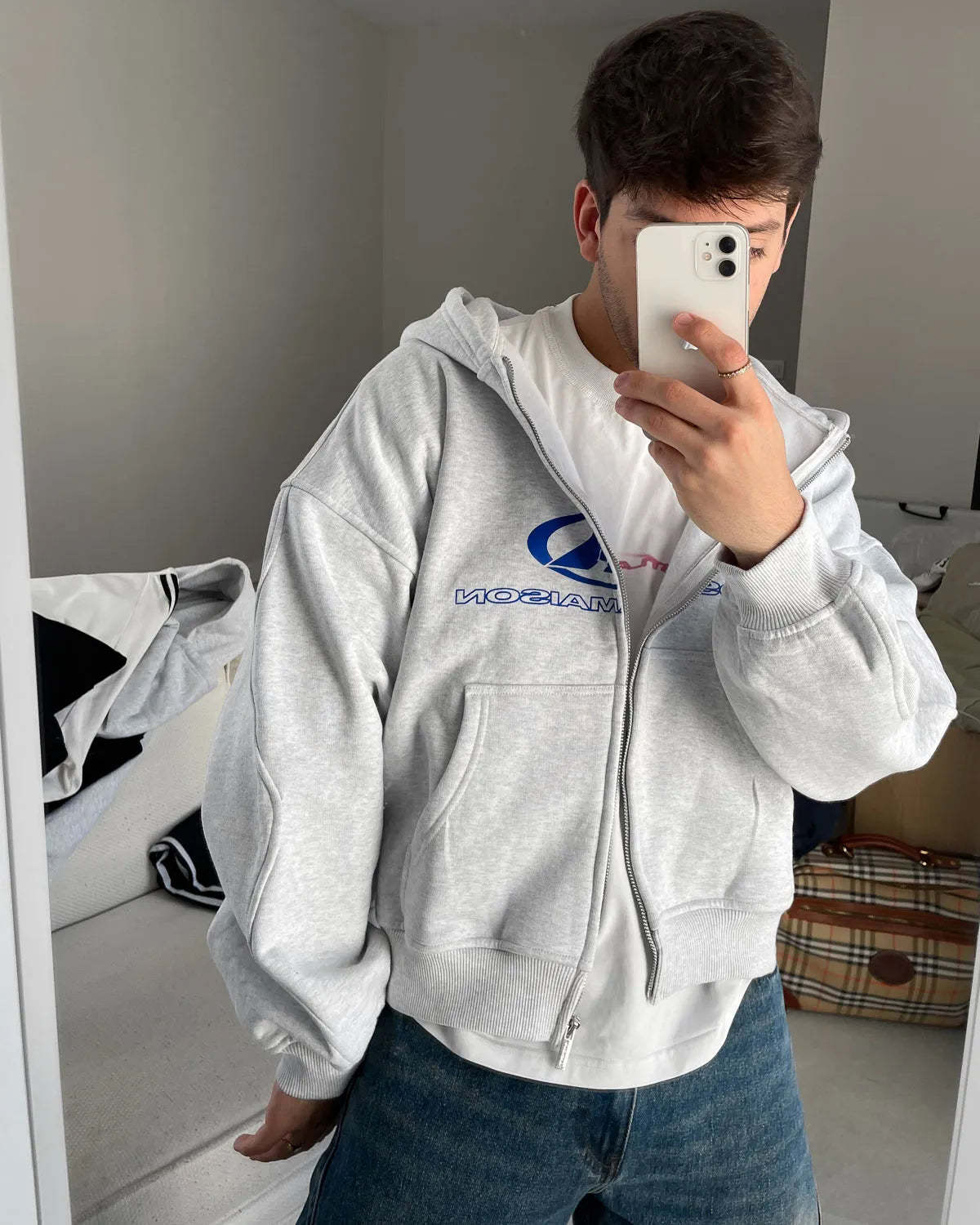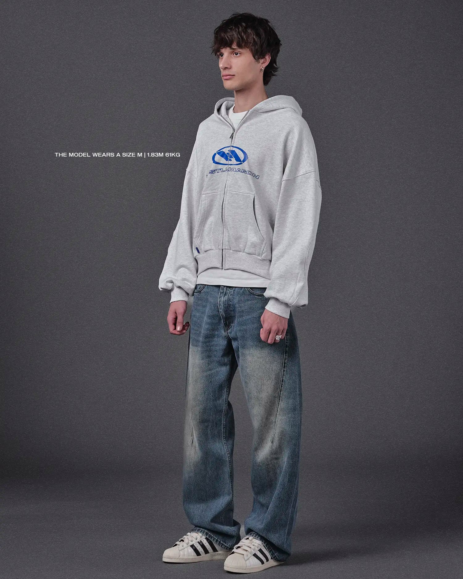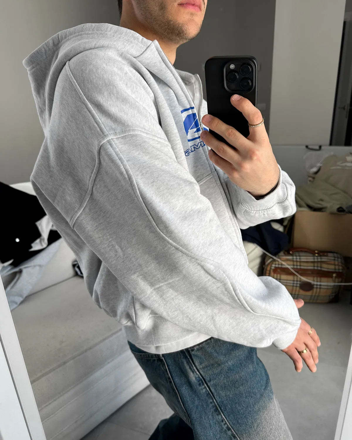 WAVY ARMS GREY ZIPPED HOODIE